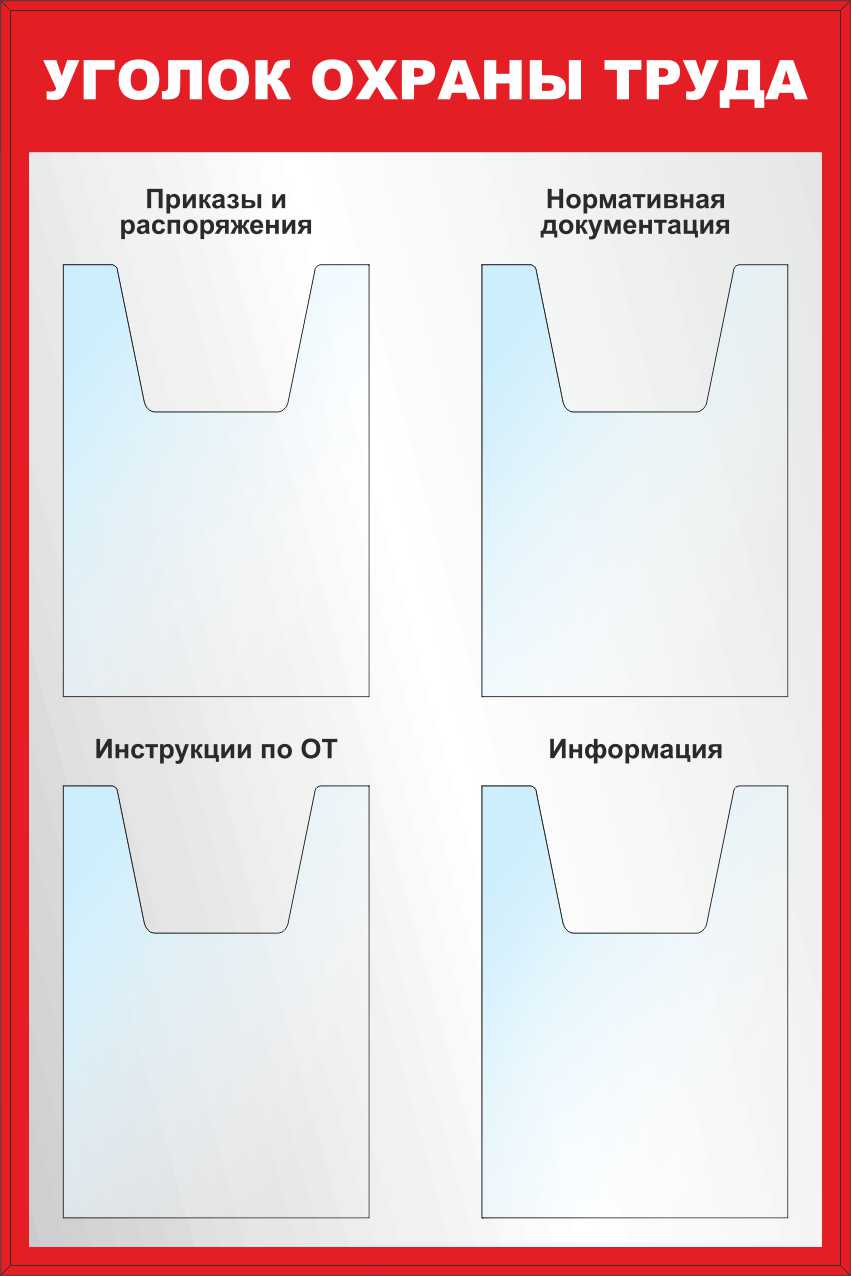 Стенд Охрана труда (карман плоский А4-4шт, карман объемный А4-2шт, карман А4 -2шт глубина 20мм) (1200х1000; Пластик ПВХ 4 мм, алюминиевый профиль; )