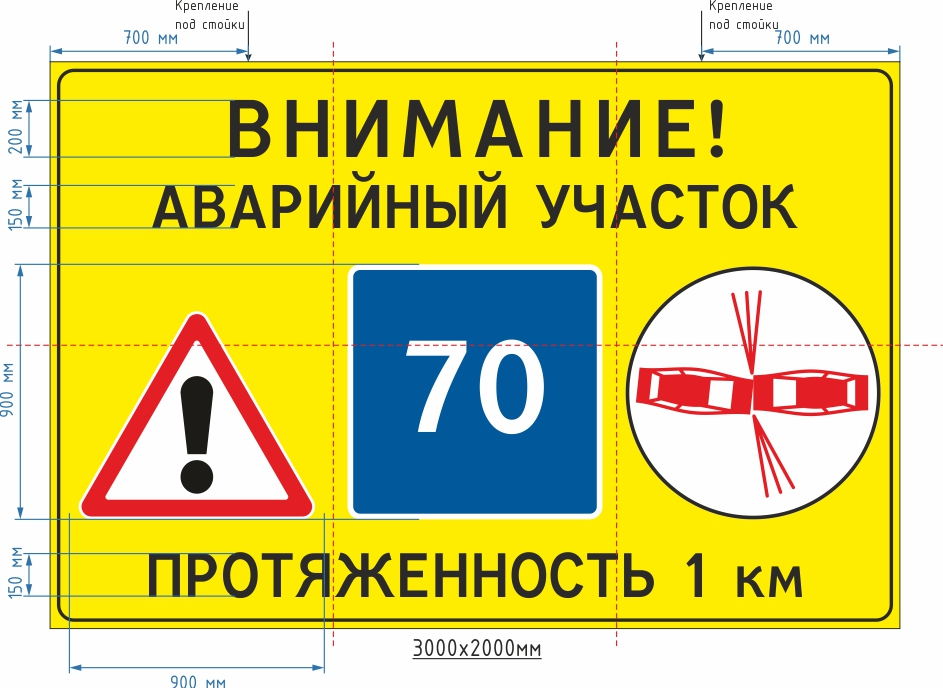 Дор. знак индивидуального проектирования (4 600х2 900, Металл 0,8 мм оц., пленка световозвращающая класса I б, Рама под 3 стойки, ГОСТ 32945-2014)